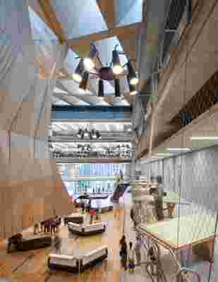 Now he is preparing for the opening of the John H. Daniels Faculty of Architecture, Landscape, and Design at the University of Toronto on a prominent site with an existing neo-Gothic building, which he incorporated into the new structure. Given that the school offers training in architecture, landscape architecture, and urban design, Tehrani made sure the building “engaged all three disciplines.” Indeed, like the other two buildings, it invites collaboration; Tehrani says that “with the withering away of architecture as a siloed practice, we need buildings that encourage interdisciplinary thinking.”